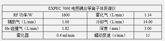 表1 电感耦合等离子质谱仪测试参数