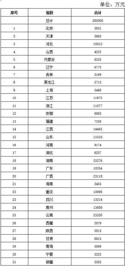 2021年土壤污染防治专项资金提前下达安排表如下: