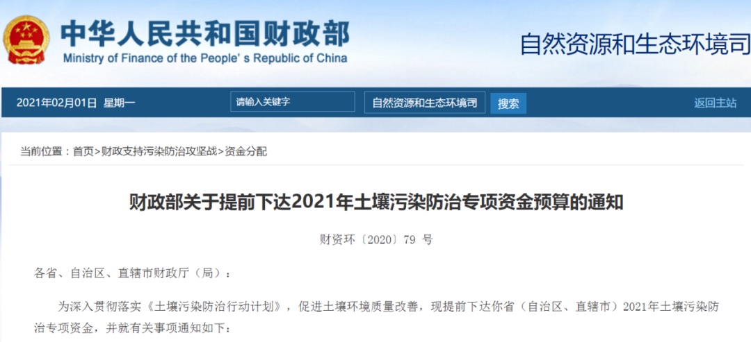 财政部下达的关于2021年土壤污染防治专项资金预算的通知中明确列出各省(自治区、直辖市)的安排金额,全国共计28亿元人民币,要求各省(自治区、直辖市)确定明确的绩效目标及时对下分解,做好预算绩效管理工作。截至目前,已有浙江、四川、广东、江西、海南、郑州等省市陆续下达关于2021年中央土壤污染防治资金的公示。