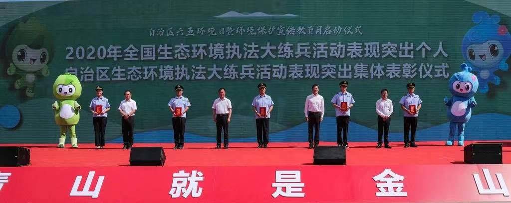 新疆维吾尔自治区生态环境厅党组书记、副厅长戴武军上台为启动仪式发表讲话,协同自治区生态环境厅党组成员、副厅长田丰、乌鲁木齐市委副书记顾昱及乌鲁木齐市委常委、副市长崔玉淼共同开启“新疆维吾尔自治区六五环境日暨环境保护宣传教育月”系列活动,并为获得生态环境执法大练兵活动的中表现突出的集体、个人颁发证书。